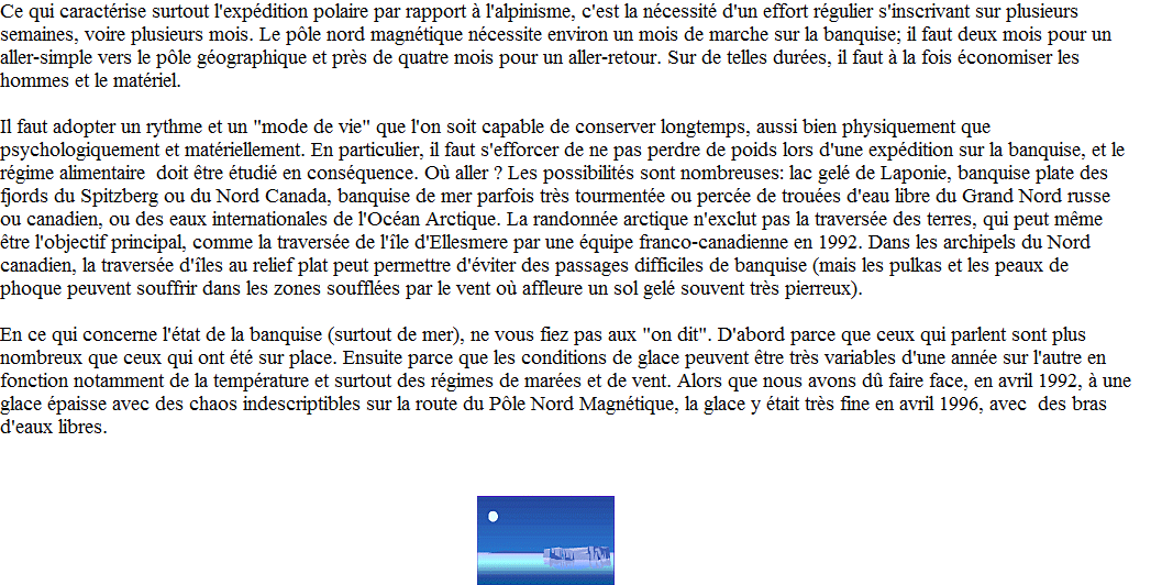 devient molle et les bras d'eau libres deviennent de plus en plus nombreux. Un aller-retour sur le pôle géographique nécessitera toutefois un