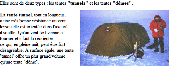 | signale qu'il utilise depuis des années des tentes "tunnels" (Dovrefjell Helsport et