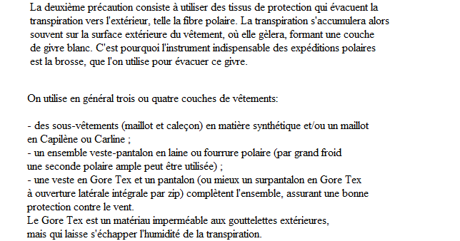 Mais la première précaution contre l'humidité est d'éviter de transpirer. Quand on