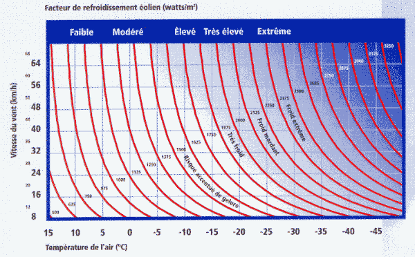 que le vent est violent. On évalue ce froid ressenti par un nombre appelé " windchill " ou