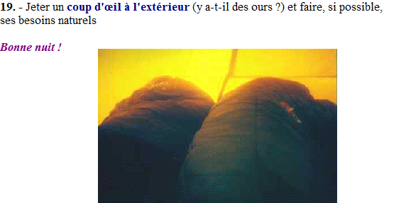 bivouac, y compris les rations (pour avoir à ressortir le moins possible)