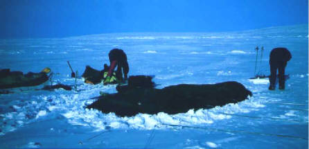 9. - Refermer les pulkas, les placer perpendiculairement au vent, la partie au vent